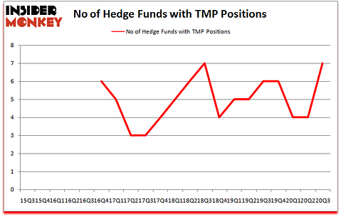 At the end of the third quarter, a total of 7 of the hedge funds tracked by Insider Monkey were long this stock, a change of 75% from the previous quarter. The graph below displays the number of hedge funds with bullish position in TMP over the last 21 quarters. With the smart money’s capital changing hands, there exists an “upper tier” of key hedge fund managers who were adding to their holdings significantly (or already accumulated large positions).