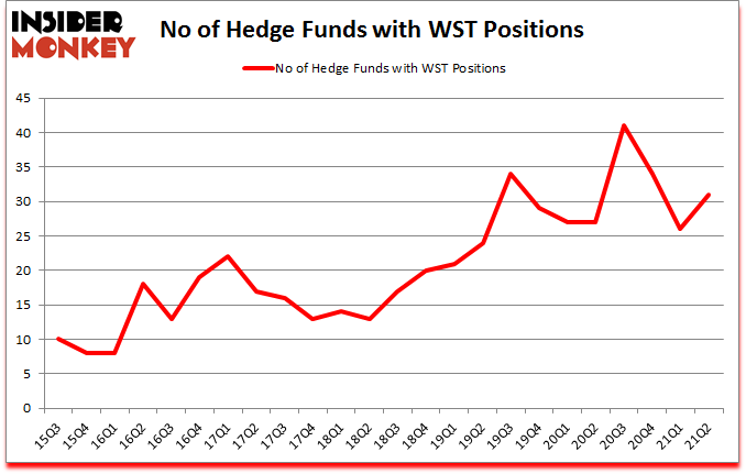 West Pharmaceutical Services Inc. (NYSE:WST) was in 31 hedge funds’ portfolios at the end of June. The all time high for this statistic is 41. WST has experienced an increase in enthusiasm from smart money recently. There were 26 hedge funds in our database with WST holdings at the end of March. Our calculations also showed that WST isn’t among the 30 most popular stocks among hedge funds (click for Q2 rankings).