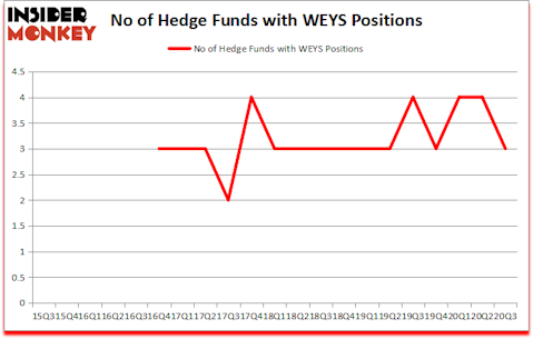 At Insider Monkey we scour multiple sources to uncover the next great investment idea. For example, Federal Reserve has been creating trillions of dollars electronically to keep the interest rates near zero. We believe this will lead to inflation and boost real estate prices. So, we recommended this real estate stock to our monthly premium newsletter subscribers. We go through lists like the 10 most profitable companies in the world to pick the best large-cap stocks to buy. Even though we recommend positions in only a tiny fraction of the companies we analyze, we check out as many stocks as we can. We read hedge fund investor letters and listen to stock pitches at hedge fund conferences. You can subscribe to our free daily newsletter on our website. With all of this in mind we’re going to analyze the recent hedge fund action encompassing Weyco Group, Inc. (NASDAQ:WEYS).