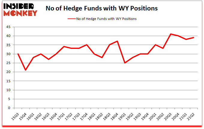 At the end of June, a total of 39 of the hedge funds tracked by Insider Monkey held long positions in this stock, a change of 3% from the previous quarter. The graph below displays the number of hedge funds with bullish position in WY over the last 24 quarters. So, let’s find out which hedge funds were among the top holders of the stock and which hedge funds were making big moves.