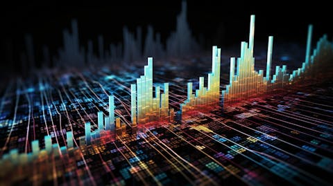 A close-up of a financial chart jumping as the large-capitalization value sector changes.
