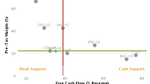 Now, back to that free cash flow yield. This giant retailer is now worth $257 billion and if you use fiscal 2014 free cash flow as a basis, then shares are sporting a free cash flow yield 5.4% ($11.4B / $257B). That’s still a comfortably higher yield than Wal-Mart’s bonds, which generally offer a yield-to-maturity of just below 4%.