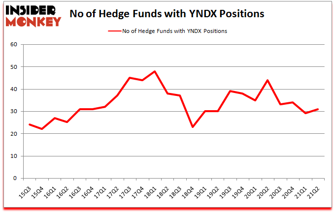 Yandex NV (NASDAQ:YNDX) has experienced an increase in activity from the world’s largest hedge funds lately. Yandex NV (NASDAQ:YNDX) was in 31 hedge funds’ portfolios at the end of the second quarter of 2021. The all time high for this statistic is 48. Our calculations also showed that YNDX isn’t among the 30 most popular stocks among hedge funds (click for Q2 rankings).